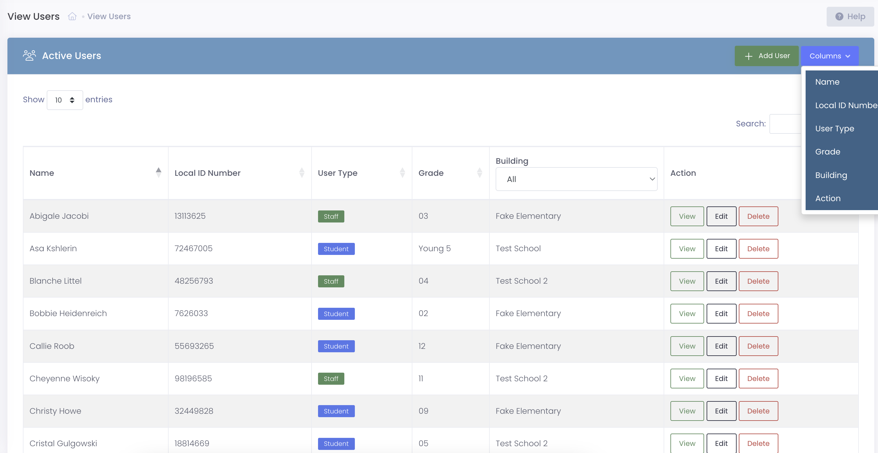 The user table supports customizable columns, allowing you to tailor the view to your workflow.